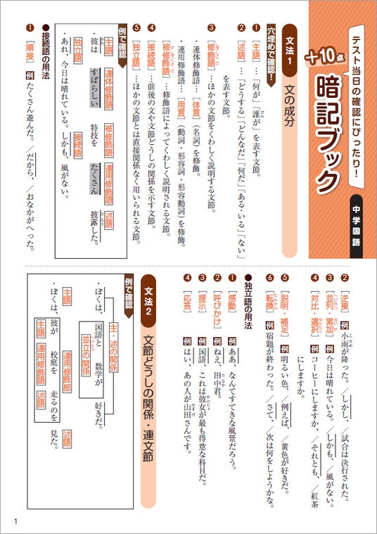 (中学国語 別冊「+10点暗記ブック」紙面イメージ )