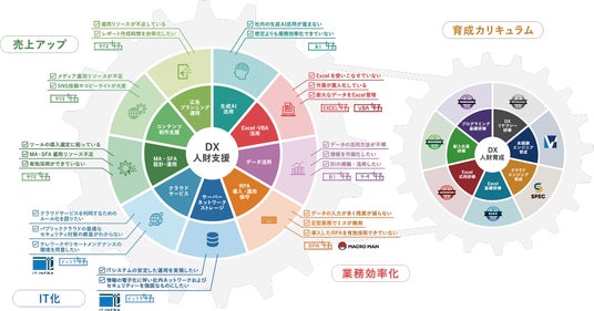 デジタル未経験者をリスキリングによりDX人財に育成することで、不足するDX領域への労働移動を実現。企業や行政のDX化を「業務効率化」「IT化」「売上アップ」の3つから支援いたします。