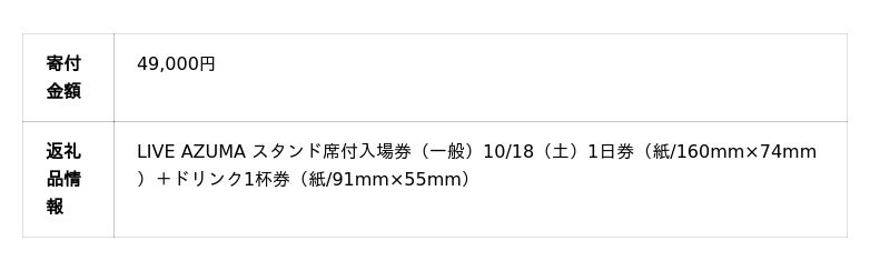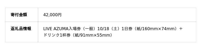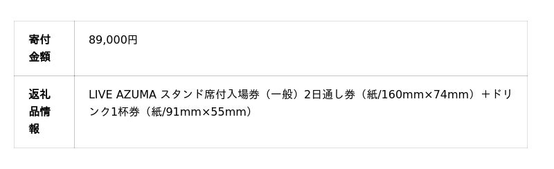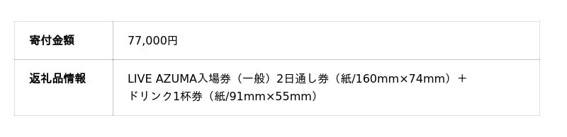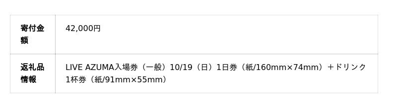 「LIVE AZUMA 2025」の返礼品は、ドリンクチケット付きの数量限定。