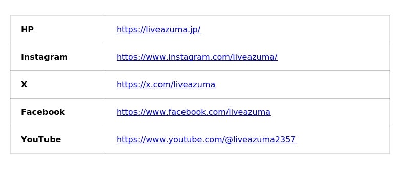 ※詳細は、LIVE AZUMA オフィシャルホームページをご覧ください。