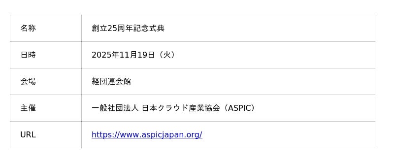 - ASPIC主催 創立25周年記念式典 開催概要