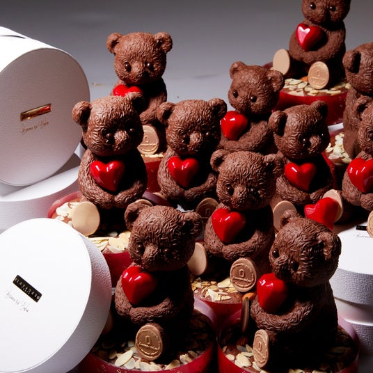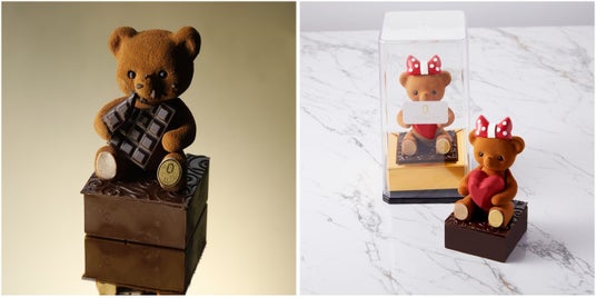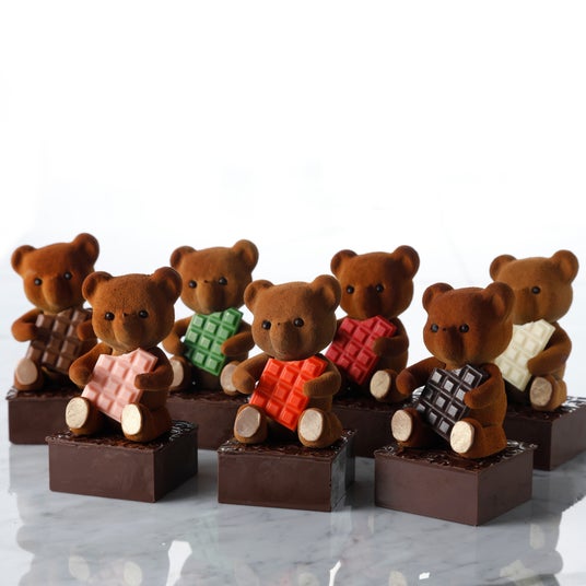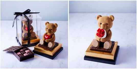 プレゼントに最適なチョコレートで作られたテディベアのヌーミー、板チョコをかじった食いしん坊な姿が愛らしいショコラボックスです。ボックスの中には、2種類のボンボンショコラが隠されており、見た目も味わいも楽しめる逸品です。