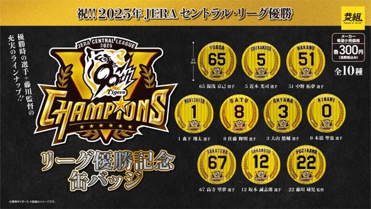 【祝・阪神タイガース】2025年JERA セントラル・リーグ優勝記念グッズを発売!~「缶バッジ」「アクリルスタンド」「めじるしチャーム」発売予告のご案内~