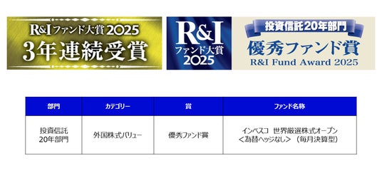 R&I ファンド大賞2025:世界のベストが投資信託20年部門 外国株式バリューカテゴリーで優秀ファンド賞を3年連続受賞