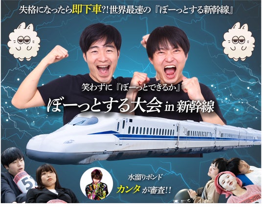 「ぼーっとする大会 in 新幹線」は、忙しい日常を忘れてリラックスすることを目的としたユニークなツアー。お笑い芸人が登場して笑わせたり、眠たくさせたりする妨害があったり、笑ったり、眠ったりするとその駅で ”即下車” になります。