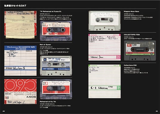 大滝詠一が1975年に設立した自身のレーベル「ナイアガラ・レコード」の50周年を記念して刊行される今回の書籍について、発売に先駆け紙面の一部が公開されました。近年のナイアガラ関連のリリースを手がけるデザイナー・岡田崇による黒を基調とし写真を大きく配したレイアウトは、旧版に親しんだ世代にも新鮮な印象を与え、CITY POPアートを代表する各作品のデザイン性の高さを存分に堪能できるものとなっています。そして今回は、LPやCDとは一味違った存在感を放ち、マニアからは見過ごせないアイテムとなっているカセット・テープやMDも単品作品としてフィーチャー。さらに、リリース当時のポスターや広告、マニア垂涎の希少なプロモ盤、未発売作品のテスト盤、門外不出の自作カセット&DATなども惜しみなく掲載しています。