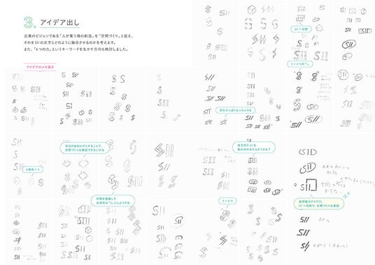 また、クライアントの要望やコンセプトをもとに、どのように考えながら文字や形を選び、ロゴをつくっているのか実際の過程を詳しく紹介。