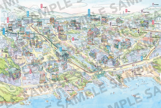 空想の街並みが描かれた、厳選のポストカードを収録