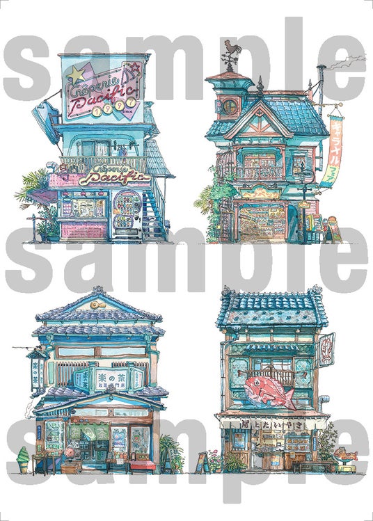 作品は全て本書のための描き下ろし。魅力的な建物の店構え40店舗を掲載しています。