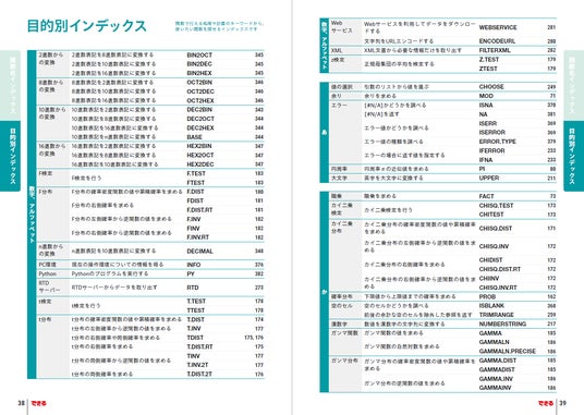 巻頭のインデックスでは、関数名や目的別(逆引き)で使いたい関数を探せます。