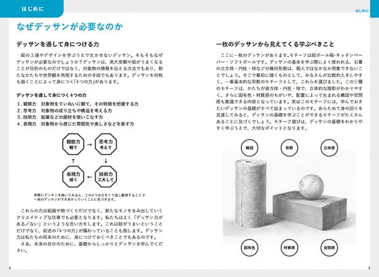 『基礎から学ぶデッサン ミニ帖 [3つの立体]から考える基本のかたち』P2-3