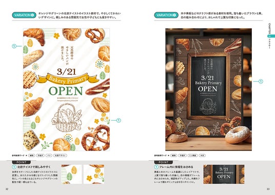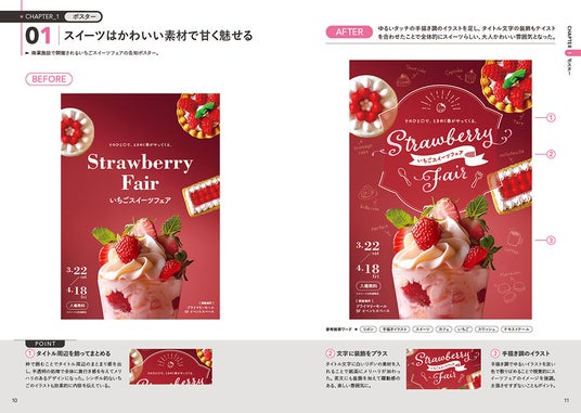 素材を生かしてぐっと良くなった作例を並べて紹介しています。
