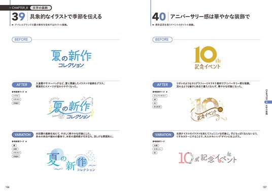 本書はノンデザイナーやデザイン初心者の味方になるデザインアイデア帖です。「飾りのあるデザイン」をテーマに素材を使ってデザインをワンランクアップさせるアイデアを紹介します。思い描くイメージに仕上げるためにはさまざまな工夫が必要です。Before/Afterでデザインサンプルを掲載しているため、パッと見てデザインの良し悪しがわかります。また、デザインのバリエーションやアドバイス、素材を探すときに便利なキーワードも掲載しています。デザインに彩りを加える素材を上手に使ってデザインを楽しみましょう。