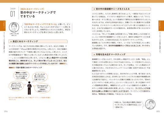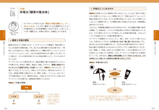 図解でポイントを整理し、短いレッスン構成でマーケティングの仕組みを効率よく学べます