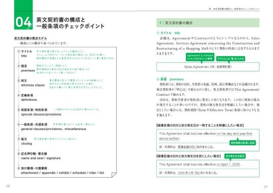 第1章[基礎編]では、契約書翻訳に不可欠な英米法の基本知識や、英文契約書の構成、そして一般的な条項のチェックポイントについて詳述します。