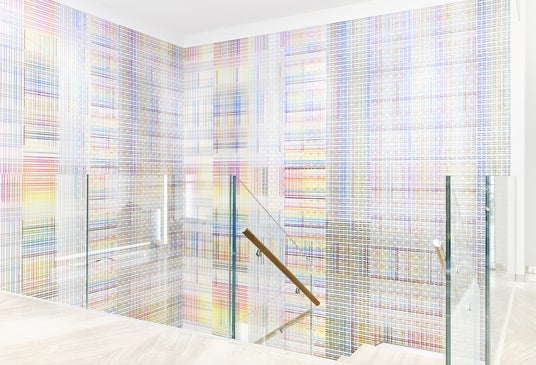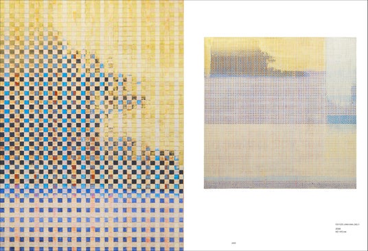 研究者である父が取り組む脳神経科学と、自身が今もなお研究に取り組むテキスタイルへの関心から、独自に生み出した手法と配色センスで作品を制作しています。その手法は、5ミリ四方の小さなグリッドを手作業で地道に描き続けていく「グリッド・ペインティング」。線の細さや色の配色に至るまで計算し尽くされたグリッドは、コンピュータを使えば簡単に描けてしまうところを、あえて手描きで緻密に何層にも色を重ねてゆきます。手作業だからこそ生まれるわずかな線のゆがみ、グリッドの大きさの微妙な違い、絵具のムラ、滲み。作品に近づいてみると見えてくるさまざまな「ズレ」には、手業が生み出す温もりと、視覚的効果が生み出す心地よさが感じられます。