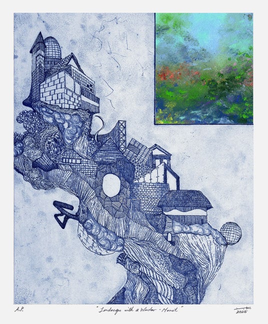 光嶋裕介は、建築家と作家というふたつの顔を持つアーティストです。建築家にとって描くことは世界を知るための大切な要素と捉え、一貫して「幻想都市風景」をテーマにした版画作品およびドローイング作品を手掛けています。5月11日(日)まで京都市京セラ美術館で開催されている「第4回 PATinKyoto 京都版画トリエンナーレ 2025」にも出展しています。製図用のペンで緻密に描き込まれたドローイングは、光嶋の内面が投影され、建築家として描くスケッチとは異なる空想的な世界が表現されています。本展では、版画トリエンナーレに出展した作品と、新作のドローイング作品を展示します。