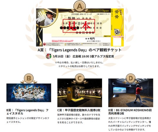 A賞:「Tigers Legends Day」のペア観戦チケット10組20名様【5月16日金曜日 対広島戦】