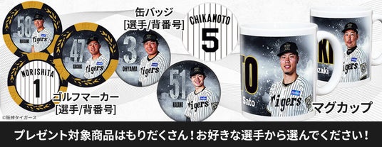 「Tigers Legends Day」プレゼントキャンペーン詳細や、500種類以上の阪神タイガース関連グッズ一覧はこちらからご覧ください