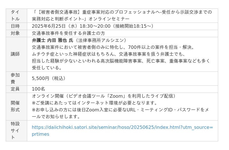 【セミナー】「【被害者側交通事故】重症事案対応のプロフェッショナルへ!-受任から示談交渉までの実務対応と判断ポイント-」開催決定!