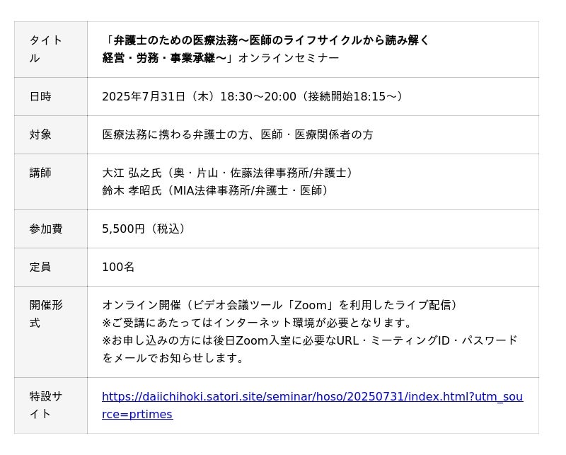 開催:第一法規株式会社(https://www.daiichihoki.co.jp)