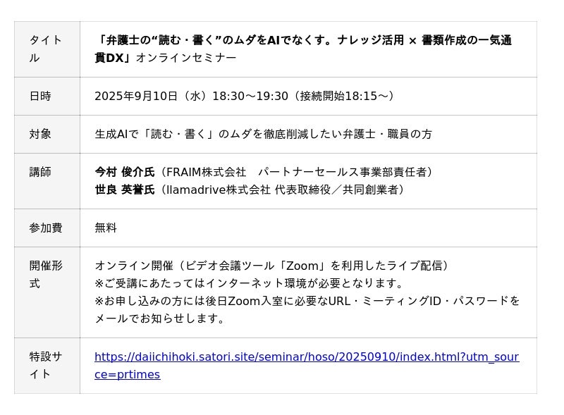 ◆本ウェビナーはFRAIM株式会社・llamadrive株式会社・第一法規株式会社の3社共催セミナーです◆