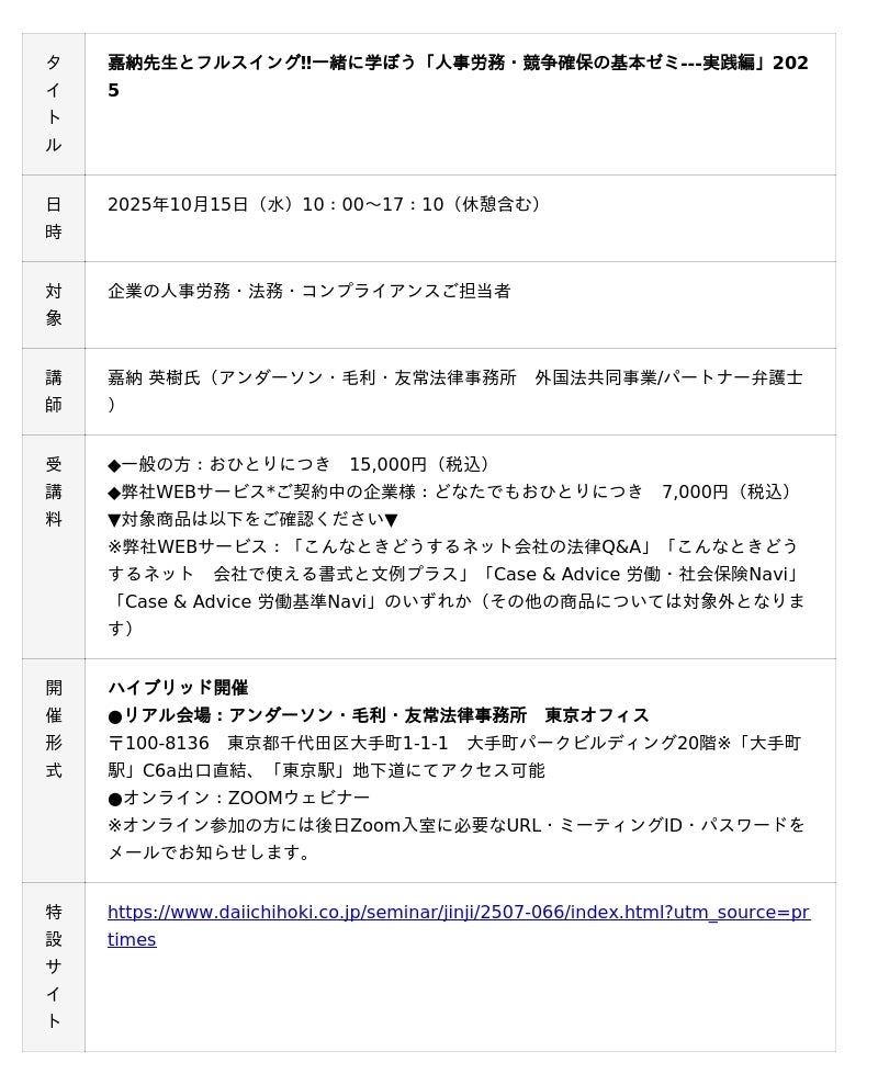 【10月15日開催|人事労務および競争確保の「いろは」を伝授】嘉納先生とフルスイング!!一緒に学ぼう「人事労務・競争確保の基本ゼミ---実践編」2025