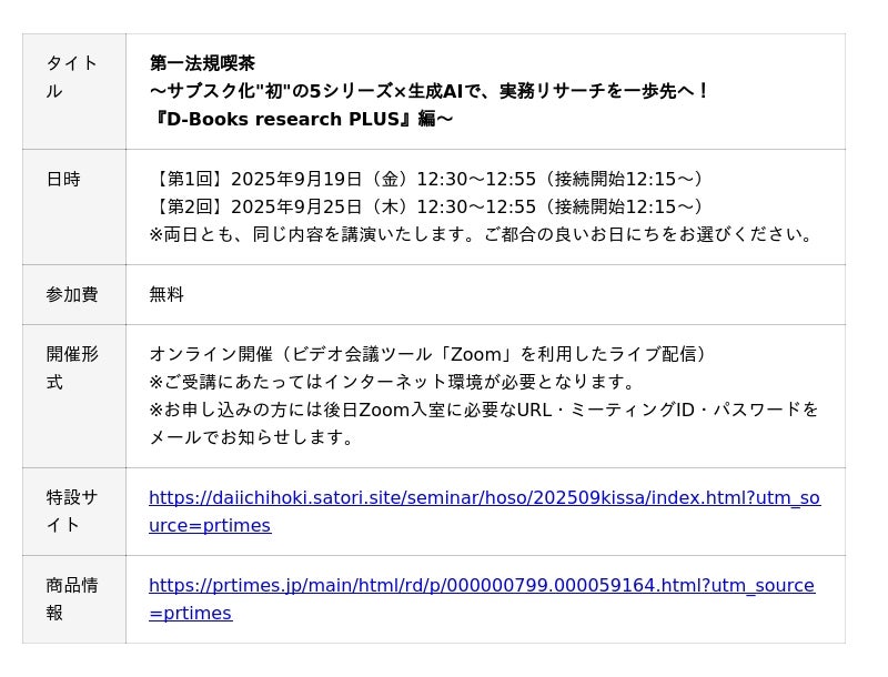 【無料セミナー】「第一法規喫茶~サブスク化"初"の5シリーズ×生成AIで、実務リサーチを一歩先へ!『D-Books research PLUS』編~」開催決定!