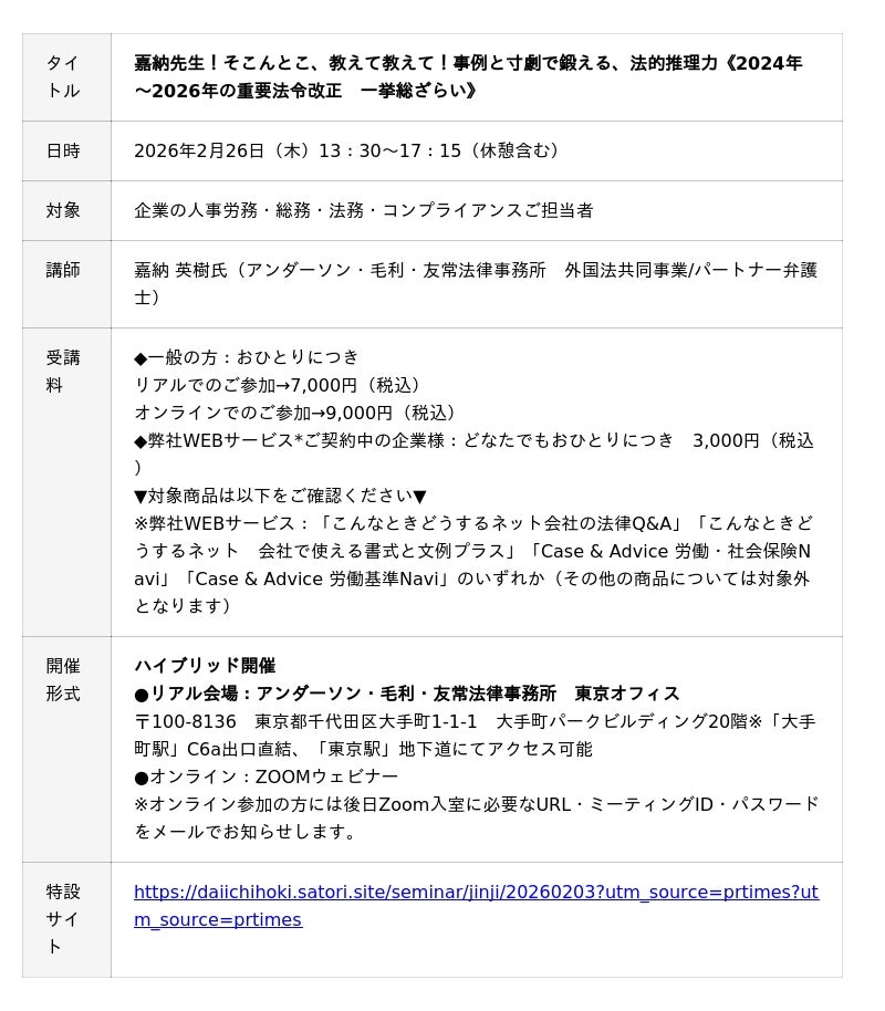 【2月26日開催|2024年~2026年の重要法令改正 一挙総ざらい】嘉納先生!そこんとこ、教えて教えて!事例と寸劇で鍛える、法的推理力