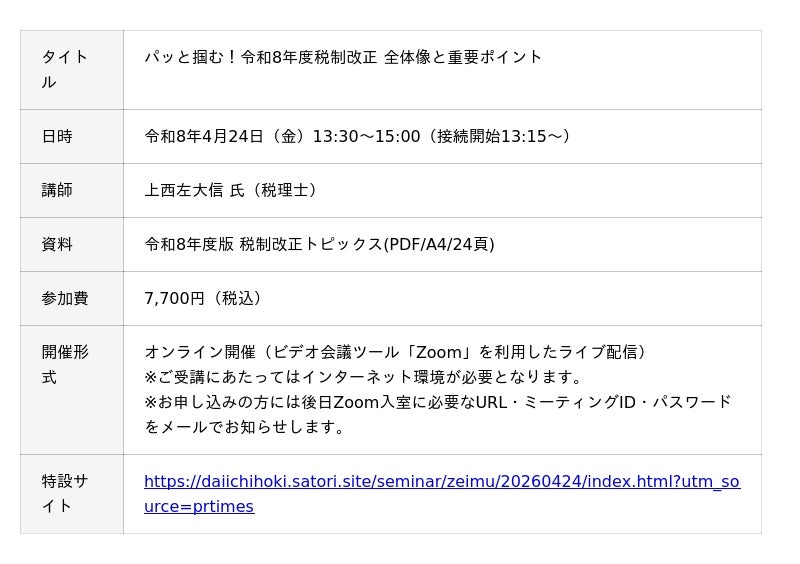 【セミナー】パッと掴む!令和8年度税制改正 全体像と重要ポイント 開催決定!