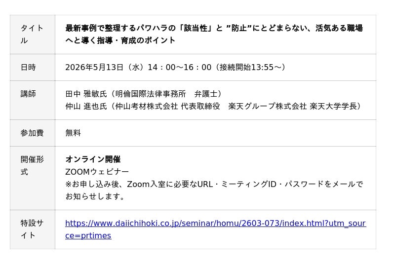 【5月13日開催|無料セミナー】最新事例で整理するパワハラの「該当性」と ”防止”にとどまらない、活気ある職場へと導く指導・育成のポイント