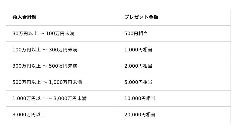 ・特典付与時に口座を解約済み、または解約手続き中の方は、本キャンペーンの対象外となります。
