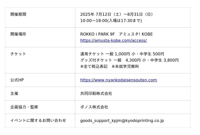 共同印刷株式会社(本社:東京都文京区、代表取締役社長:大橋 輝臣、以下:当社)は、ポノス株式会社が提供するスマートフォン向けゲームアプリ『にゃんこ大戦争』の初めての巡回展『みんなで出撃!にゃんこ大戦争展』を開催します。