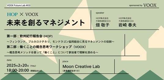 「未来を創るマネジメント~欧州先進事例から考えるマネジメントの意味と価値」をテーマに、HOP株式会社とVOOXが共同開催するイベントです。