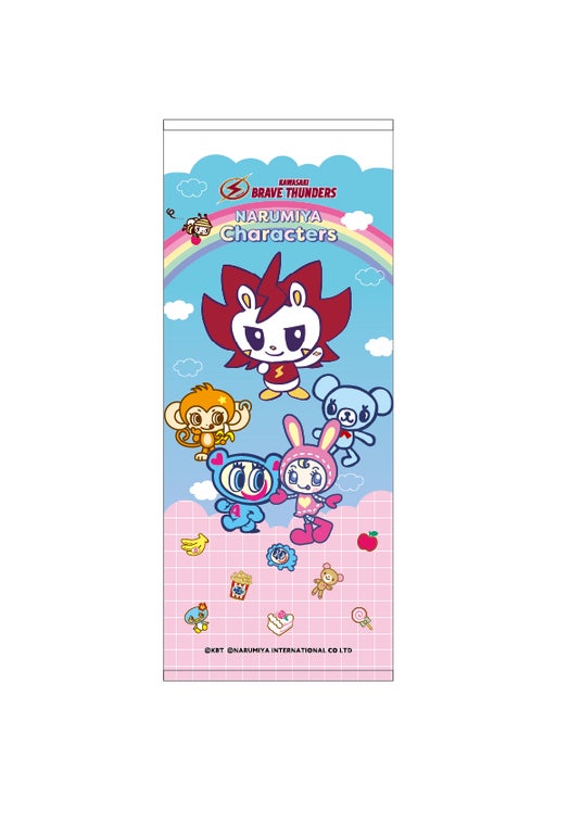 2月1日(土)、2日(日)に開催する りそなグループ B.LEAGUE 2024-25 第20節 滋賀レイクス戦(会場:川崎市とどろきアリーナ)にて、コラボグッズの販売や、来場者プレゼント、フォトスポットの設置を行います。川崎ブレイブサンダース マスコット「ロウル」を本企画のためにナルミヤキャラクターズ風イラストに描き下ろし、グッズやステッカー、フォトスポットに反映し、平成を彷彿とさせるカラフルでポップなデザインに仕上げました。