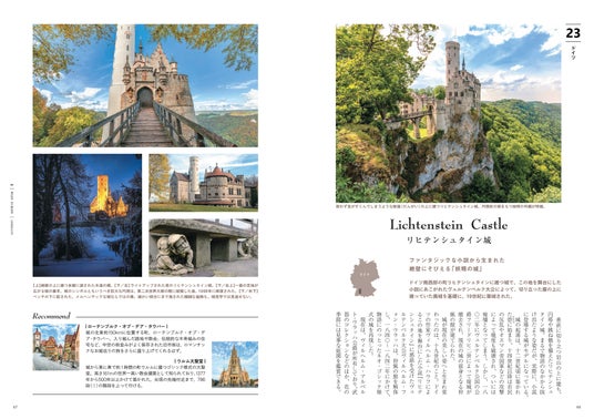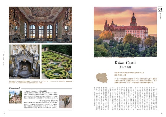 本書では、美しいビジュアルとともに、その城が経てきた歴史や時代背景、文化についてもやさしく解説。ロマノフ王朝の栄華を伝えるエカテリーナ宮殿(ロシア)、イベリア半島最後のイスラム王朝の最高傑作アルハンブラ宮殿(スペイン)、いまも最後の皇帝の直系が所有するホーエンツォレルン城(ドイツ)など、あなたを甘美な夢と歴史の世界に誘います。もちろん、現在どのような形で見学できるのか、合わせて回りたい近隣の美しい町など、実際に訪れる際にも役立つ情報も紹介しています。