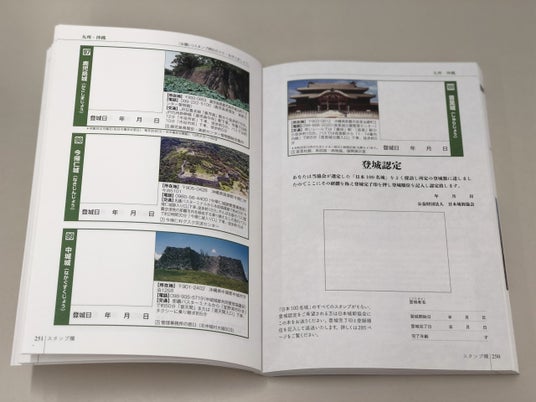 日本100名城スタンプラリーは、100名城を訪れて公式スタンプ帳にスタンプを押し、日本城郭協会から「登城完了認定」を受けるというスタイルです。