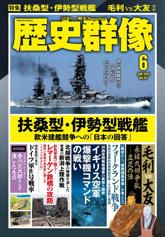 株式会社ワン・パブリッシング(東京都港区/取締役社長:松井謙介)は2025年5月7日(水)に『歴史群像6月号』を発売いたしました。本号の第一特集は、日本が初めて国内で建造した超ド級戦艦、扶桑型とその改設計版である伊勢型戦艦の実像に迫る「扶桑型・伊勢型戦艦」、第二特集は第二次世界大戦でドイツに対する戦略爆撃を実施した「イギリス爆撃機コマンドの戦い」、第三特集は、北部九州を舞台に行われた毛利と大友の熾烈な戦いを描く「毛利vs大友 永禄九州争乱ー立花の陣」。これら3大特集を含む、歴史ファン、戦史ファンにぜひお読みいただきたい20本以上の記事を収録しています。
