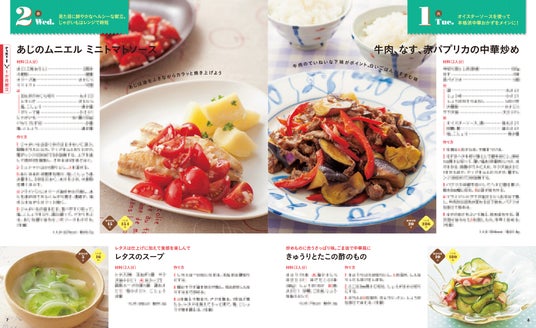 毎日の献立作りに悩む方のために、バラエティ豊かなレシピを1ヶ月分紹介します。また冷蔵庫にある食材やその日の気分に合わせて選べるメインおかずをはじめ、献立に彩りを加えるおかずやスープ・汁もの、一皿で満足できるごはんやめん料理まで手軽で節約もできるレシピが満載です。