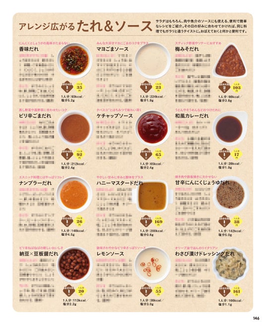 PART4では休日のブランチや時間がないときの夕食、簡単に済ませたいときに便利な1品で満足のワンディッシュメニューを紹介。ボリュームはもちろん、コスパも満点。さまざまなシーンで活躍します。さらにアレンジの幅が広がるたれとソースも紹介しています。サラダはもちろん、肉や魚介のソースにも使える便利で簡単にできるレシピです。その日の気分に合わせてかければ同じ料理がガラリと違うテイストに。覚えておくと何かと便利。