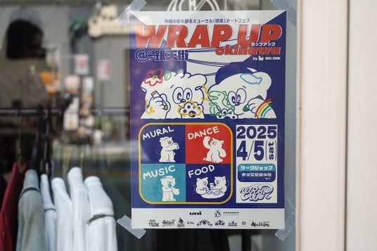 地域の店舗に貼られた「WRAP UP OKINAWA 2025」のポスター
