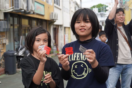 飲食ブースでは、県内の人気飲食店4店による特別メニューが、高校生以下の来場者に限定500食で無料提供されました。またcafe noorは、子どもサイズのTシャツ100着を無料提供をするなど、子どもたちにとっても楽しい遊び場となりました。沖縄そばやピザなど地元の味を味わいながら、銀天街の店舗にも自然と人の流れが生まれました。そしてフェスのラストは、沖縄を代表する楽器・三味線の演奏で静かに締めくくられました。