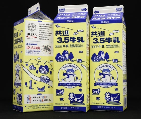 共進牧場創業135周年に合わせてリニューアルされた「共進3.5牛乳」(1000ml)