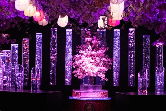春の企画展では、各作品エリアが桜のモチーフで飾られ、作品を演出する光彩は桜色に、さらに香りは桜をイメージしたものに。館内が一斉に桜色に染まる瞬間は、皆様を桜の幻想世界へ誘います。