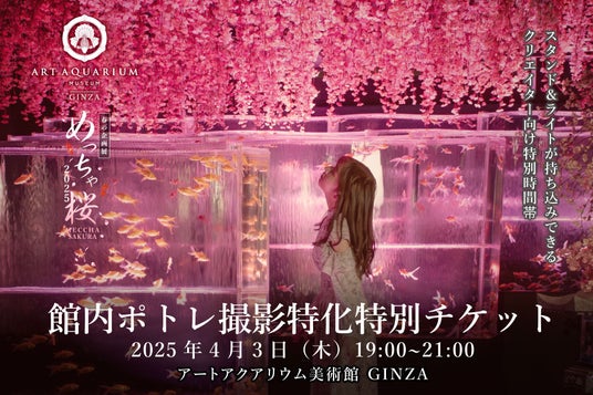 アートアクアリウム美術館 GINZA(所在地/銀座三越)で、4月3日(木)19時から閉館後の館内で動画や写真での人物撮影に特化した時間限定・人数限定の特別チケットをご用意いたしました。