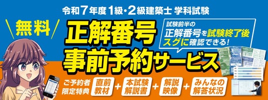 【令和7年度 1級・2級建築士 学科試験】正解番号事前予約サービス 受付開始 <総合資格学院> ~無料で正解番号が試験終了後スグにわかる! 充実の利用者限定特典~