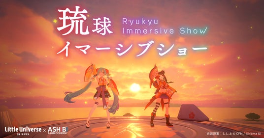 12台のプロジェクターを駆使し、前後左右の360 度映像 + 床面を含めた5面で映像と音楽を体感できるLittle Universe OKINAWAのイマーシブルーム「RYU-KYU universe」にて、沖縄生まれの総合エンターテインメント創造企業あしびかんぱにーが開発を手がけた夢の沖縄オリジナルコンテンツ『琉球イマーシブショー』の上映が、2025年4月29日(火)から始まります。