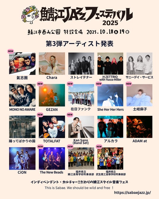『鯖江JAZZフェスティバル2025』氣志團など第三弾アーティスト発表!オフィシャル駐車場付き早割先着チケット発売開始!