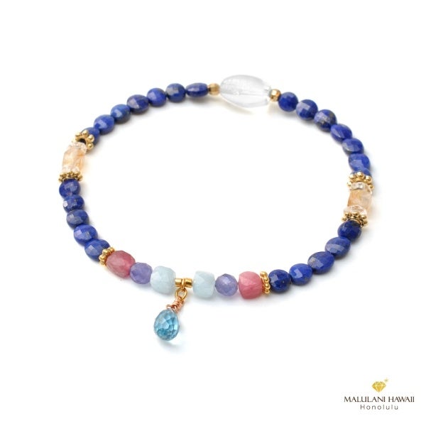 愛と平和の象徴ラリマーと、幸運のハワイアンレインボーを、エレガントに紡いだブレスレット。