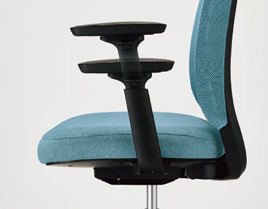 肘の高さを上下に84mm、肘パッドの左右角度を32°の範囲で細かく調整可能。ヘッドレストも体型に合わせて上下に90mmの範囲で可動できます。